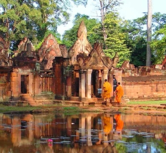Visit Banteay Srei and enjoy a village walk, including lunch.
