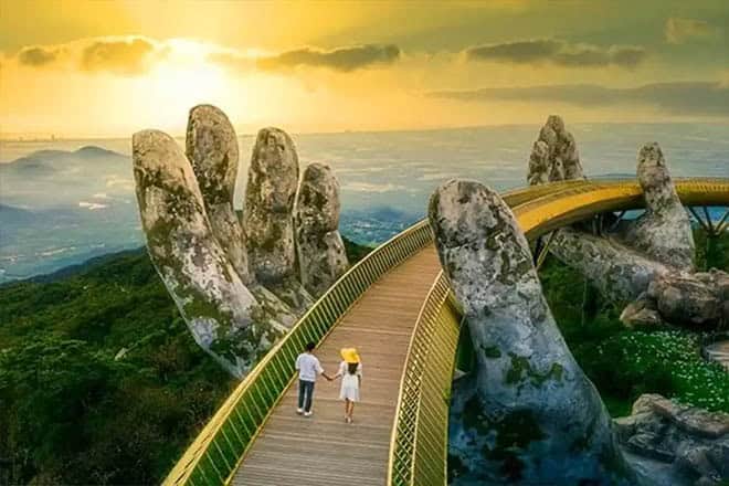 Take the cable car up to Sun World Ba Na Hills to walk across the famous “Hands of God” bridge.